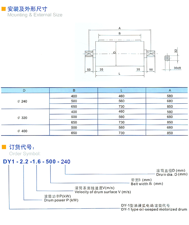 >> DY-1 型油冷式電動滾筒