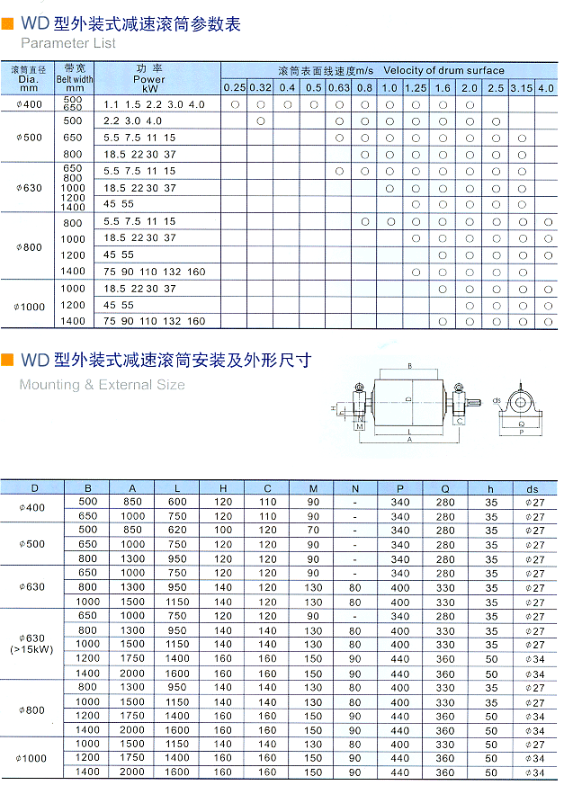WD(II)系列外裝式減速滾筒