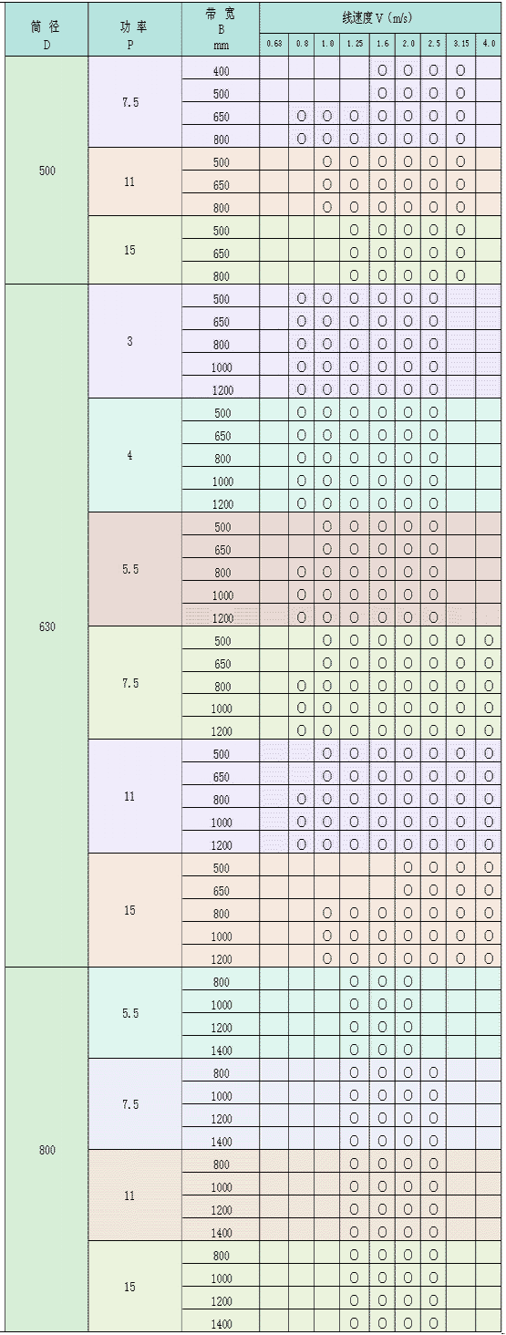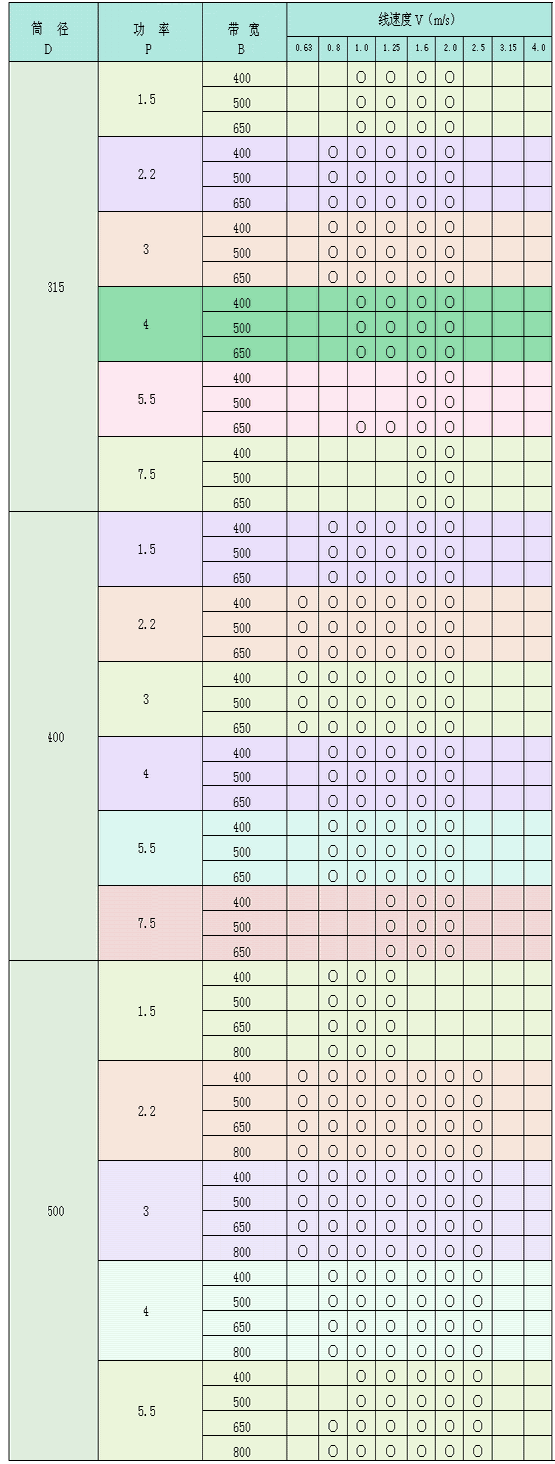 WD 型外裝式電動(dòng)滾筒系列參數(shù)表: