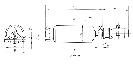 WD型外裝式電動(dòng)滾筒是二級(jí)齒輪,減速機(jī)構(gòu)置于筒形外殼內(nèi),外接立式電動(dòng)機(jī),用于帶式輸送機(jī)的一種新型驅(qū)動(dòng)裝置,大大改善了電動(dòng)機(jī)的散熱條件,適用范圍更大,且裝拆、維修方便,是各類(lèi)帶式輸送機(jī)理想的驅(qū)動(dòng)裝置。WD型具有單向旋轉(zhuǎn),反向逆止功能。